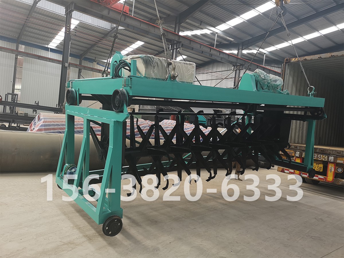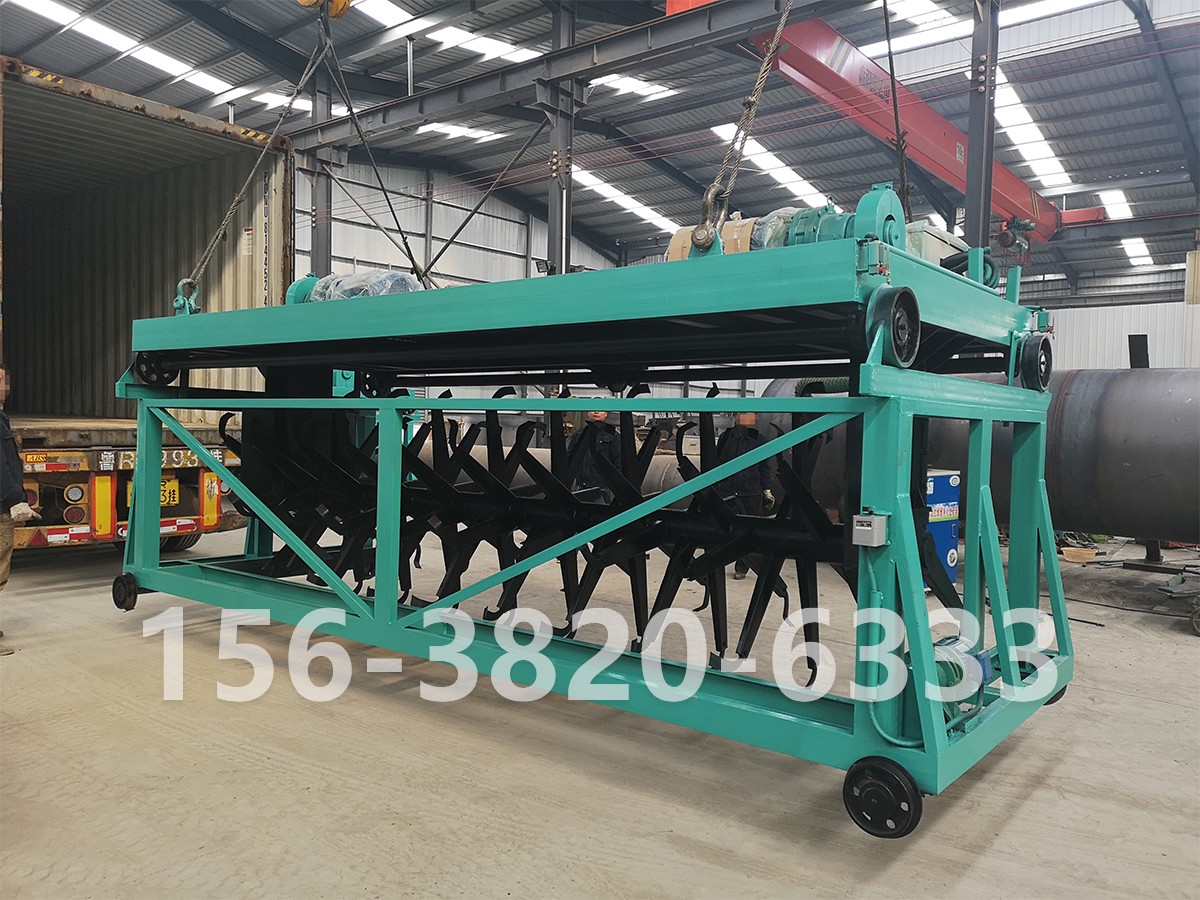 5.設(shè)備的電控系統(tǒng)先進(jìn)可靠 ,操作方便,配置有遙控,自動、手動。主機開始運轉(zhuǎn)后,然后把旋轉(zhuǎn)按鈕轉(zhuǎn)向“自動”狀態(tài)打開行走按鈕,翻拋機開始工作。翻拋運行小車橫向翻拋到一側(cè),碰住限位開關(guān),翻拋運行小車停止行走,設(shè)備整機縱向行走3-5秒(約250-300毫米)后,翻拋運行小車開始橫向翻拋至另一側(cè),這樣往返工作達(dá)到翻拋、充氧等效果。